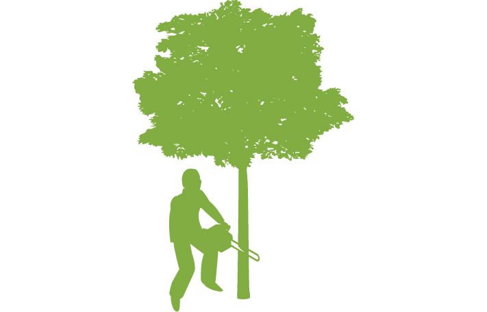 Controlamos la vegetación que crece bajo la copa de los árboles usando métodos mecánicos y/o químicos.